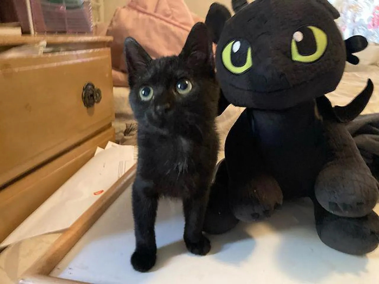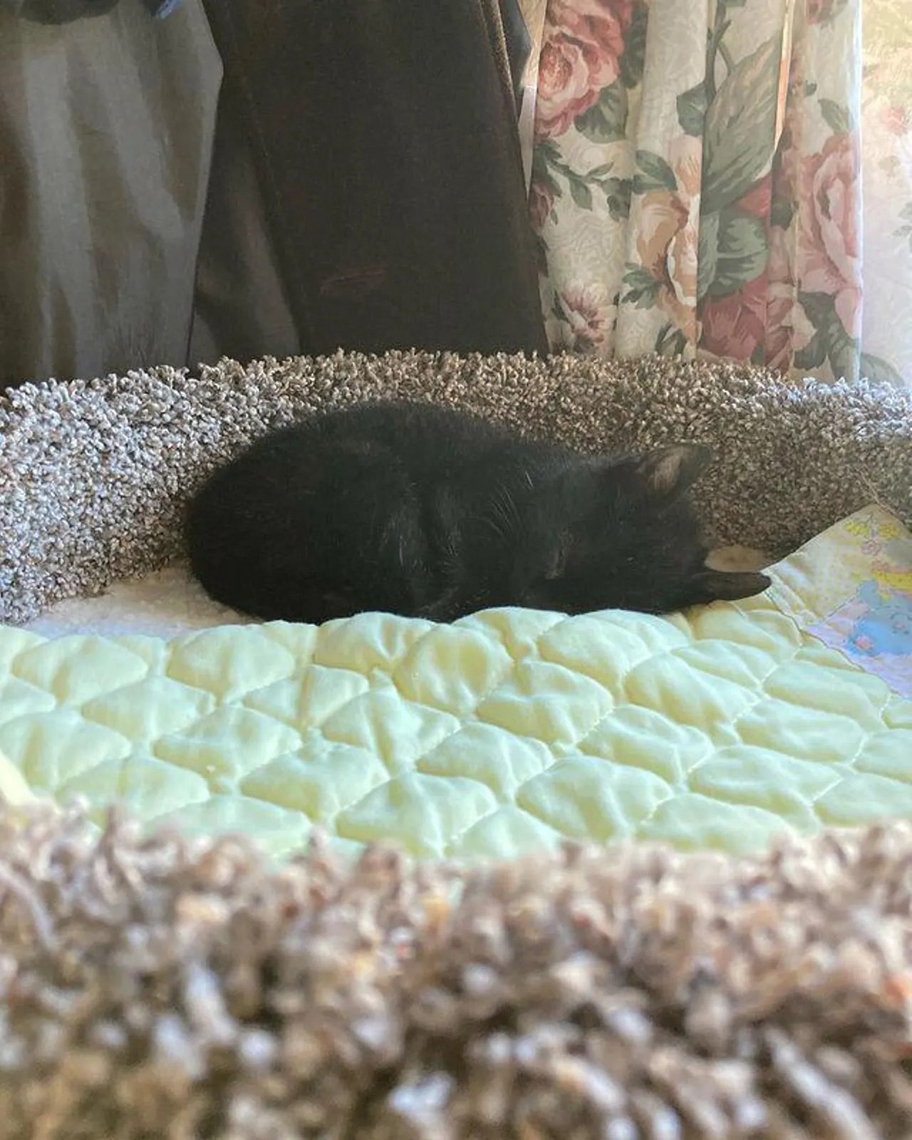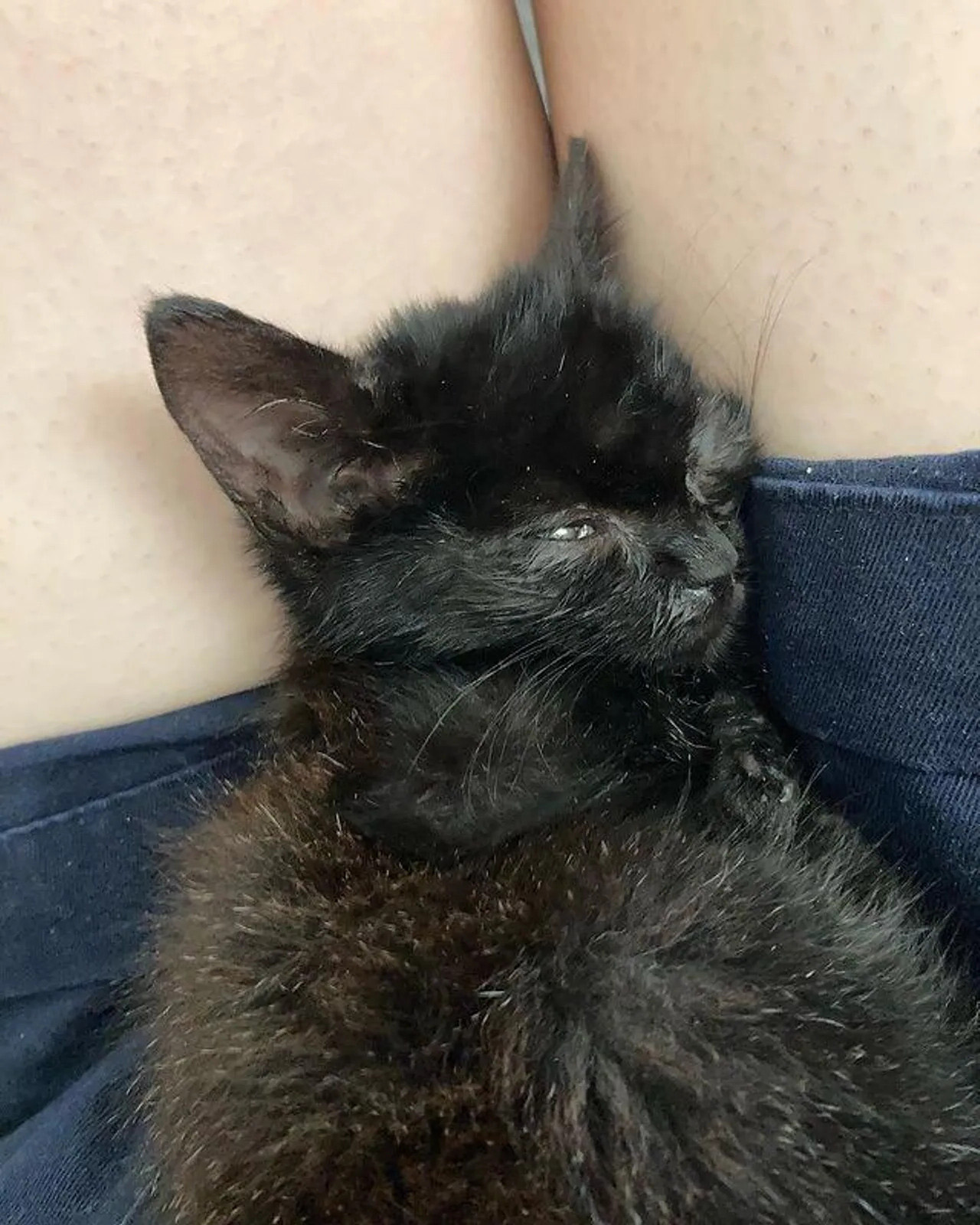 2022年06月01日長期飯票自己找~國外網友Precious Kimberly表示,有一天她發現一隻陌生的小黑貓坐在自家的車道上,牠看起來很可憐,不僅瘦骨嶙峋,眼睛還受到感染。Precious擔心貓咪的身體情況,決定暫時將牠帶回屋照顧,等牠恢復健康再找人送養,沒想到這隻小貓徹底改變了她的生活…