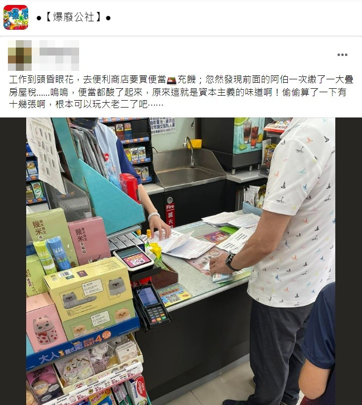 另外,還有曾在超商打工的網友分享類似的經驗:「高三打工在7-11的時候,真的都是遇到阿嬤跟阿北拿一疊的房屋稅單在繳費,通常都是附近住戶,繳稅的月份到才知道他們不是普通之人。」