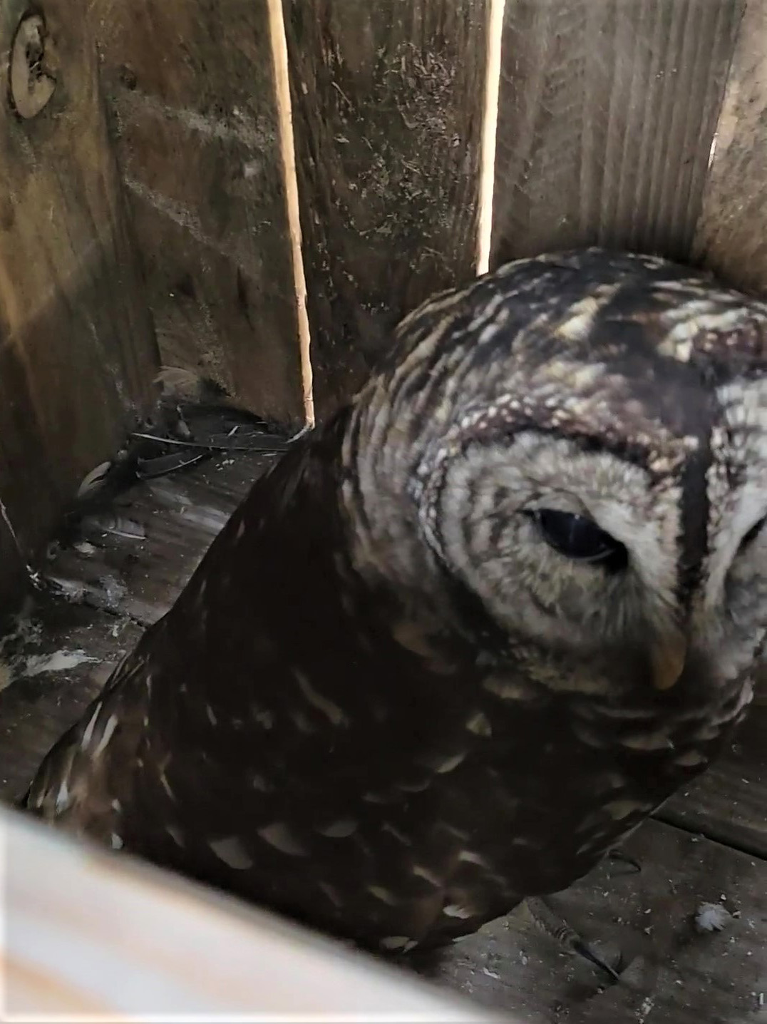 ▼這對夫妻給貓頭鷹取名為KoKo。他們表示,那天他們發現KoKo時,牠就靜靜站在公路邊。看到兩人朝牠走來,牠也沒有像一般野生動物一樣驚慌逃跑,只是睜著眼睛好奇地看著他們。
