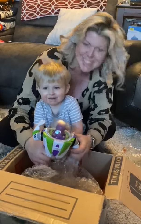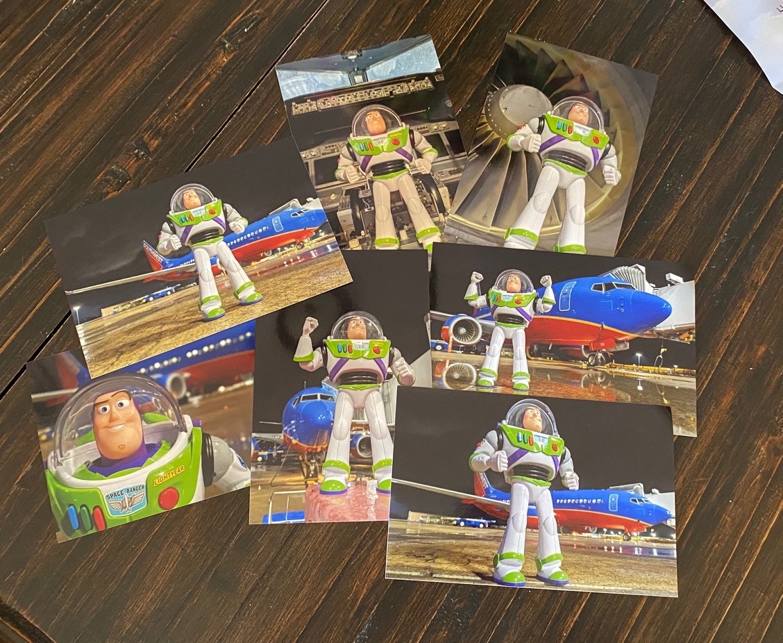 ▼Hagen一家收到包裹後非常驚喜,因為包裝上畫有可愛的插畫,裡面還有一系列巴斯光年坐在飛機駕駛座、站在機場跑道上的「出任務」照片,看起來非常酷。