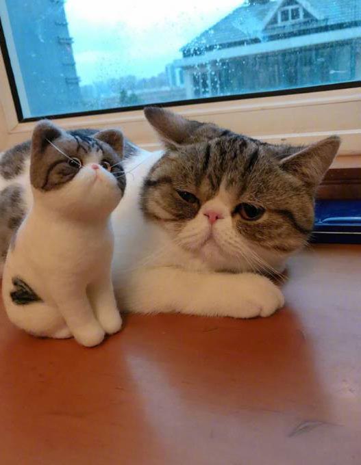 2024年03月07日每到換季的時候,家中的貓咪都會掉很多毛,清理起來很麻煩。一位網友將自家貓咪掉的毛都收集起來,用製作羊毛氈玩偶的方法做了一隻迷你貓毛氈。這個玩偶雖然比本尊小很多,但外表惟妙惟肖,貓咪看到的時候露出疑惑的表情,好像在問:「怎麼有一個小小的我?!」