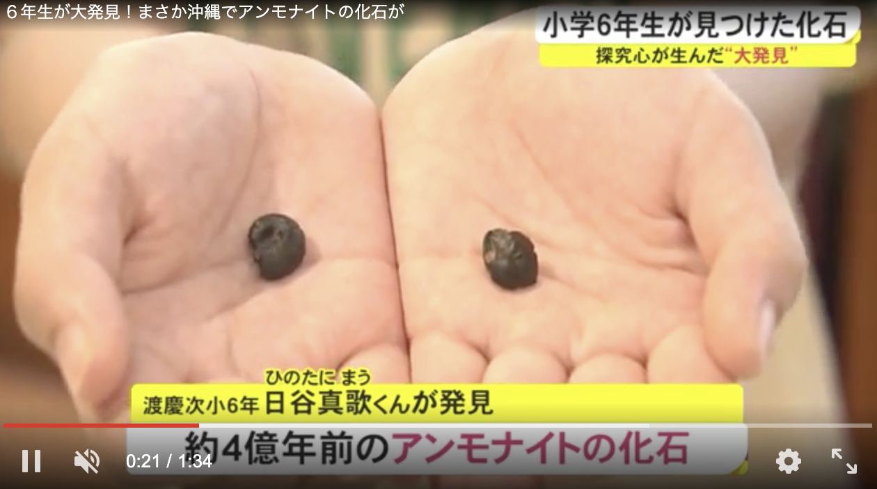 散歩中に草むらで黒光りする小石を拾ったら…4億年前のアンモナイトだった! 沖縄の小6が鋭い眼力 https://t.co/JberTz3HMK 散歩中に大発見-。沖縄県読谷村に住む日谷真歌(まう)さん(11)=渡慶次小6年=がこのほど、瀬名波の草むらで、およそ4億年前の古生代デボン紀のものとみられるアン…