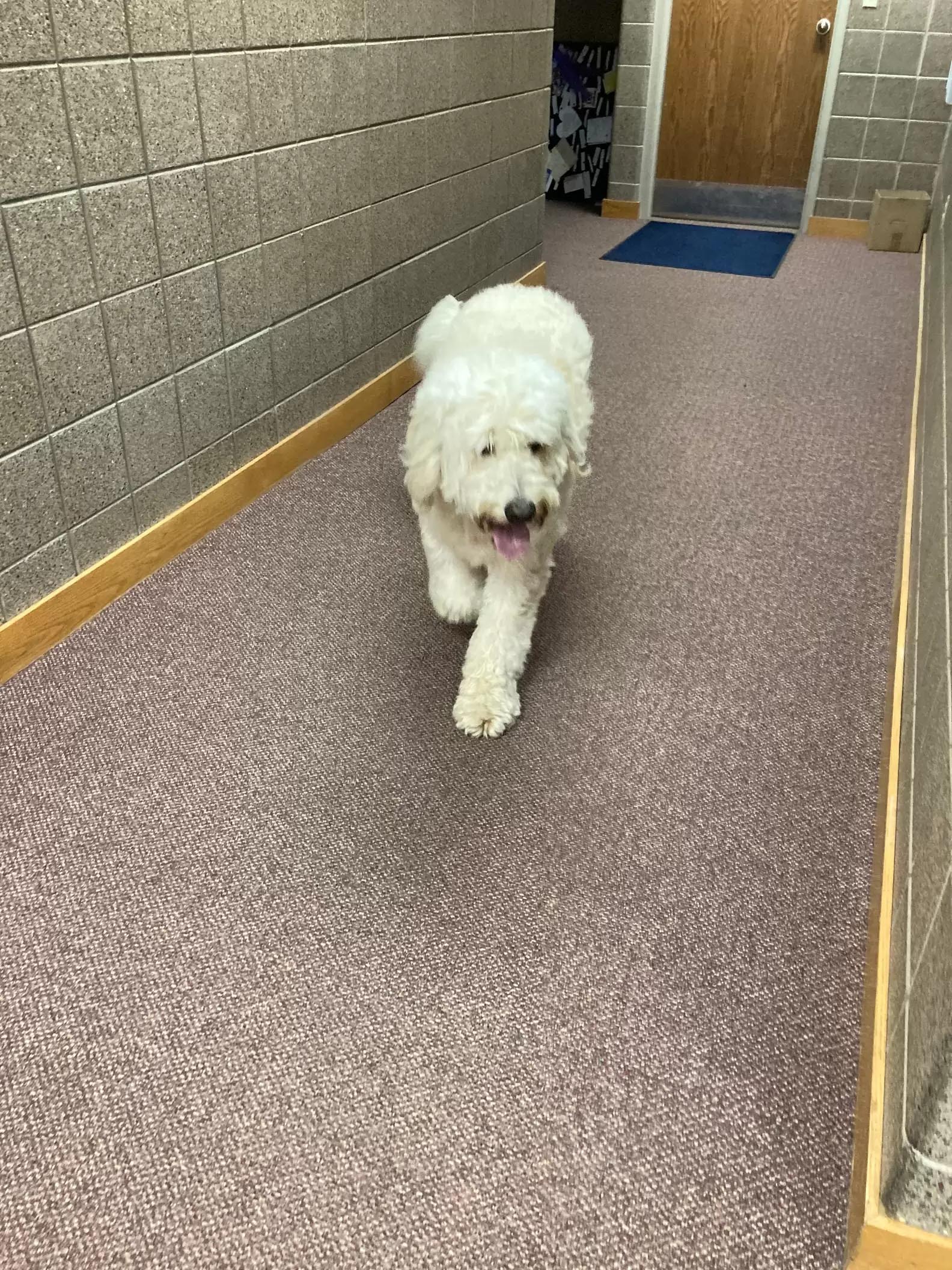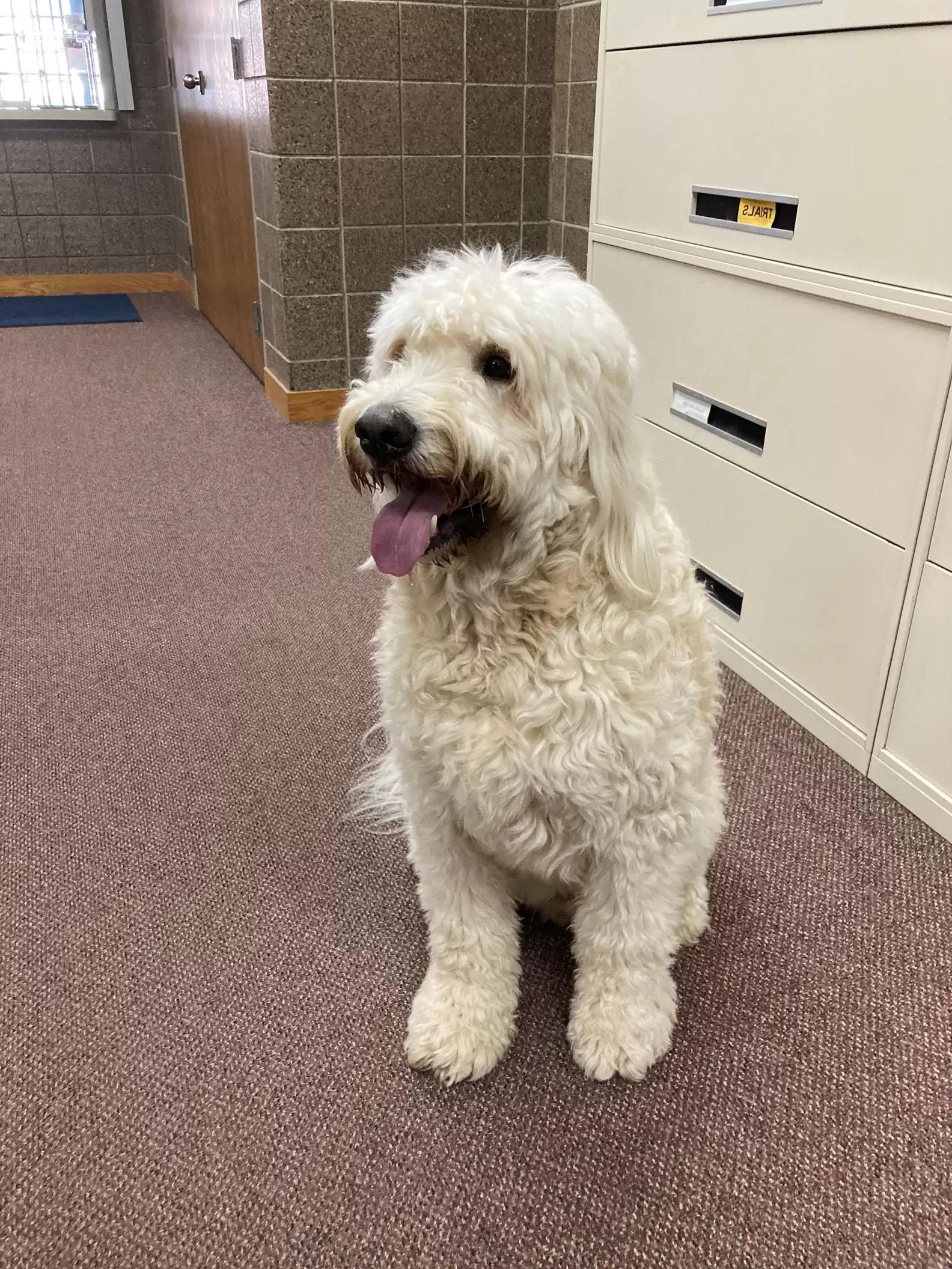 2022年07月04日日前美國威斯康辛州有員警接獲通報,有一隻大白狗獨自在街頭遊蕩,牠的毛髮非常乾淨,應該不是流浪狗,可能是走失了。員警將狗狗帶回警局,並在網路上發布尋找飼主的啟示。沒想到這隻狗狗一點也不害怕陌生人,在警局中悠然自得,還趴在櫃台上當起了接待員~
