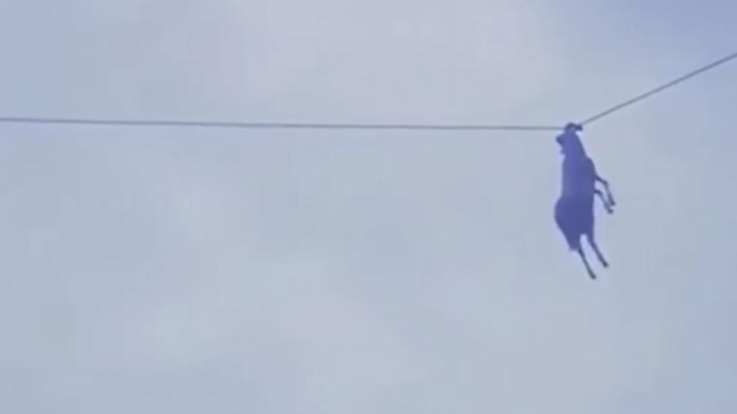 最狂停電理由!山羊掛上高壓電線「隨風飄羊」 陸網吵翻:怎麼上去的?