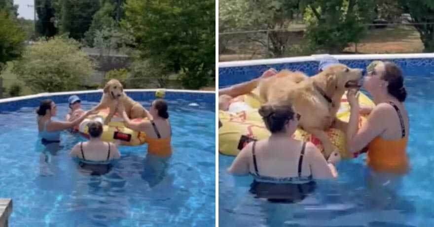 2022年07月11日日前美國網友Jennifer Motes和朋友們開泳池派對時,突然看到了一隻可愛的金金。沒有人知道這隻狗狗是從哪裡來的,大家也不認識牠,但還是決定邀請牠一起來消暑。金金跳入泳池,成為了派對裡人氣最高的那一個,那一天所有人都玩得超開心~