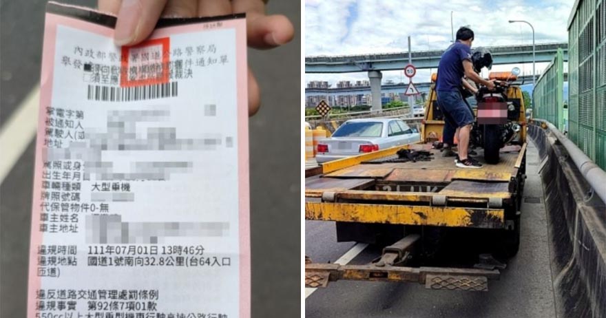 國道現場沒有合於法規的空間讓機車駛離,一經查獲會當場拖吊移置排除,駕駛人不僅得自行負擔拖吊移置費用,還得吃上違規罰單,警方如發現違規情形,為避免發生危險,會當場攔停處置,若未攔獲,也將調閱監視影像蒐證、製單舉發。