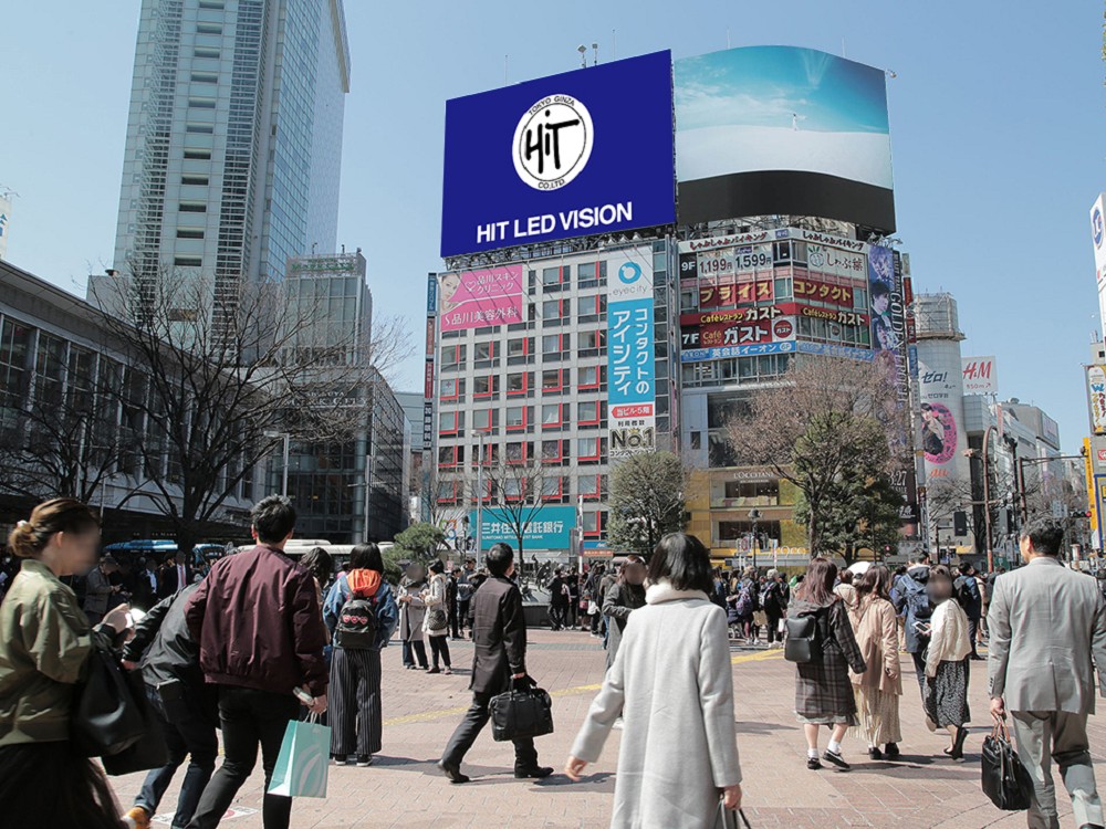 ▼除了這7面串聯的LED數位看板,還有位於澀谷十字路口的日本最大單面數位廣告看板「シブハチヒットビジョン」,共8面看板互動播放,廣告投放範圍足足有1235平方公尺,視覺效果非常震撼!