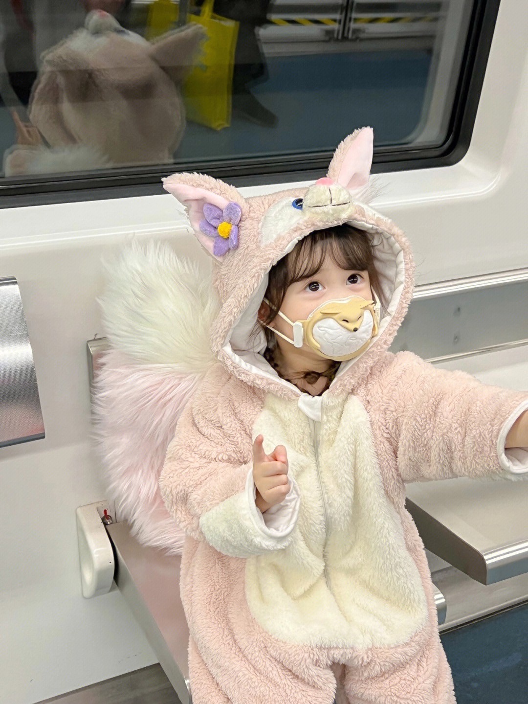 貝兒公主搭地鐵!天使女童如「真人洋娃娃」 變身「達菲兔、小狐狸」萌力更高♡
