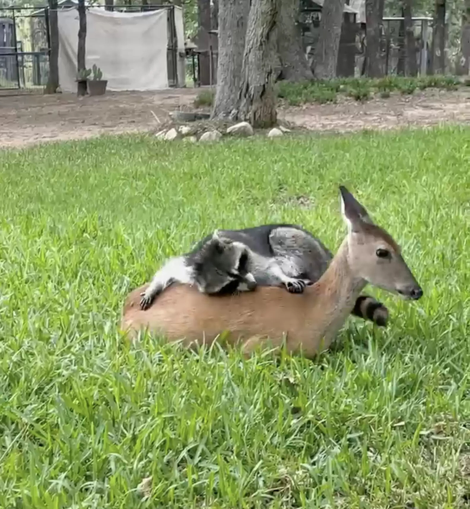 「我們都沒有媽媽!」孤兒浣熊看到獲救小鹿 趴身上安慰:現在有彼此了❤️
