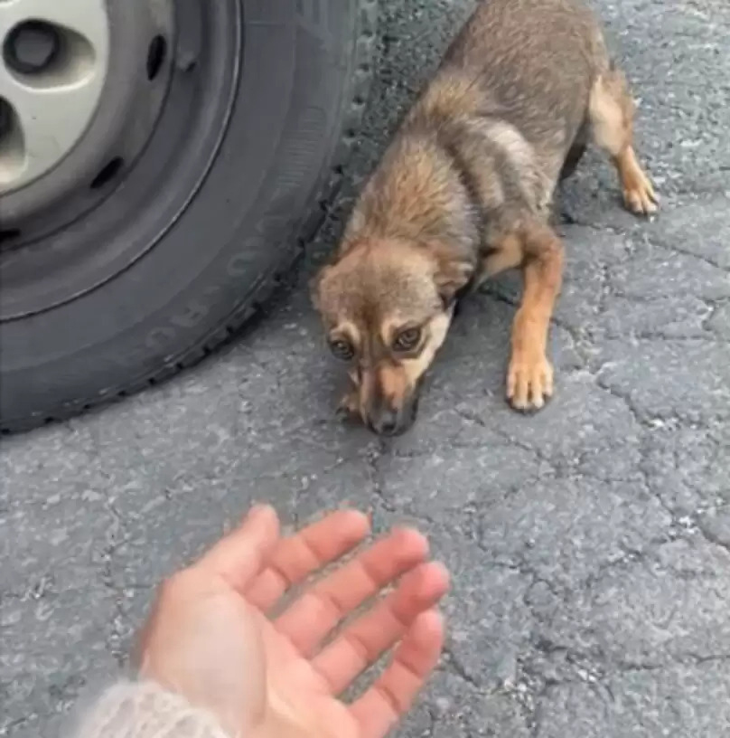 妳會害我嗎?浪汪縮輪胎旁「邊發抖邊靠近人類」 獲救後表情反轉:偶很幸福