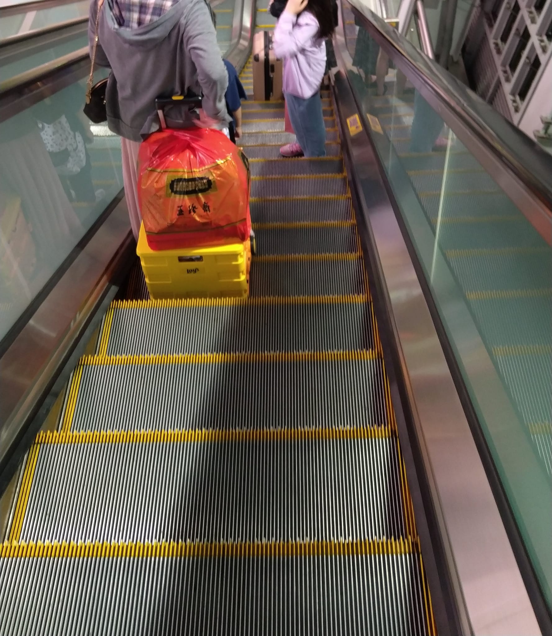 ▼原po貼出3張照片,並說:「假日會有很多不懂捷運規矩的人出來搭捷運。」仔細看照片,其中2張有旅客站在電扶梯的左側,原po似乎是在說搭電扶梯「右側站立、左側通行」的規定。