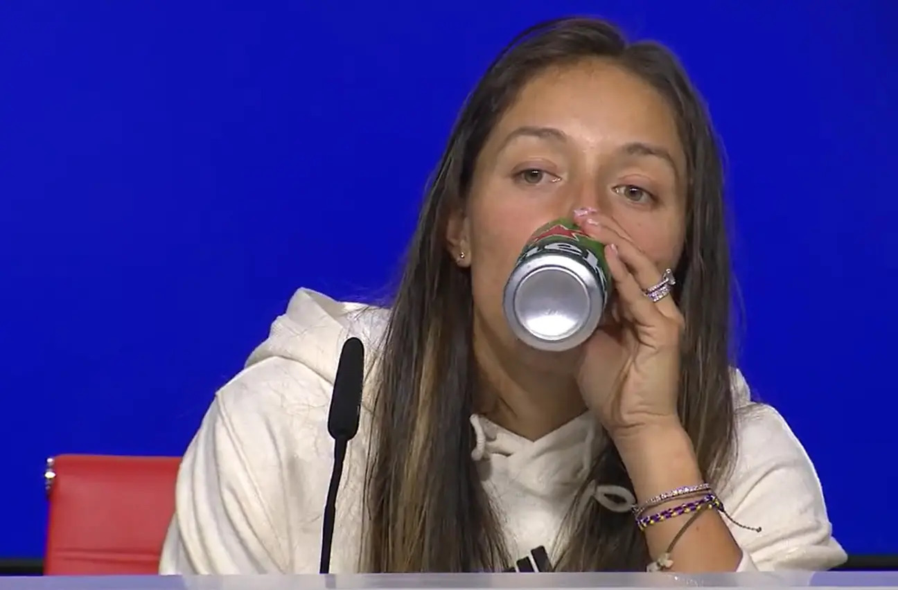 躺平了!網球選手輸掉賽後採訪「直接喝起啤酒」 眾人笑:下班後的我們