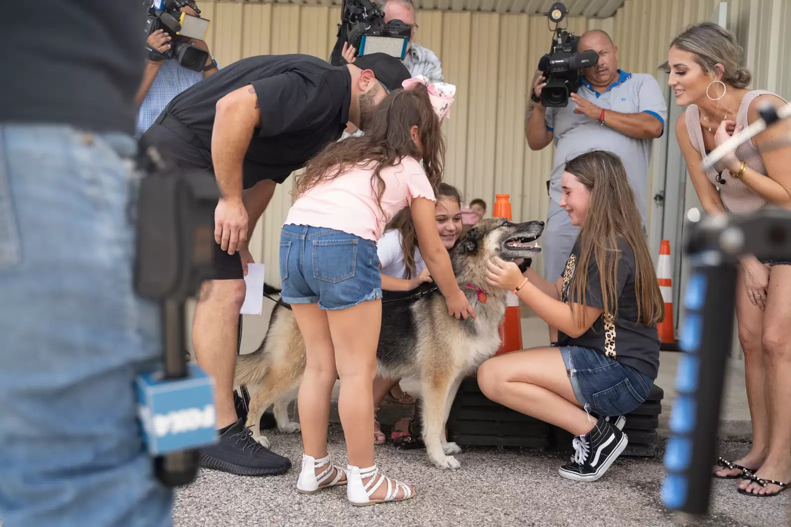 ▼席芭走下飛機後,史蒂芬妮和家人連忙上前迎接。女兒更是激動地抱著愛犬,訴說著5年來的思念。