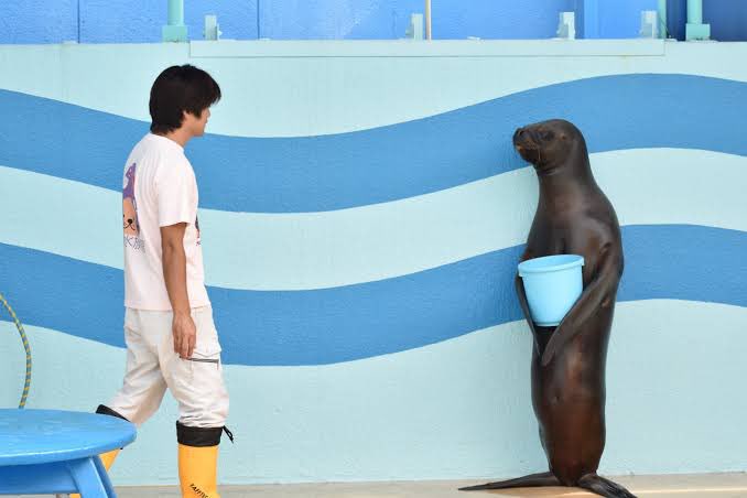 2022年10月06日工讀生快出來!最近日本推主「すんだん」在網路上分享了一張有趣的照片,照片是在愛知縣蒲郡市竹島水族館拍攝的,只見一隻海獅正抱著水桶與工作人員對峙,牠的動作與人類實在太像,好像在跟對面的工作人員抱怨一樣。