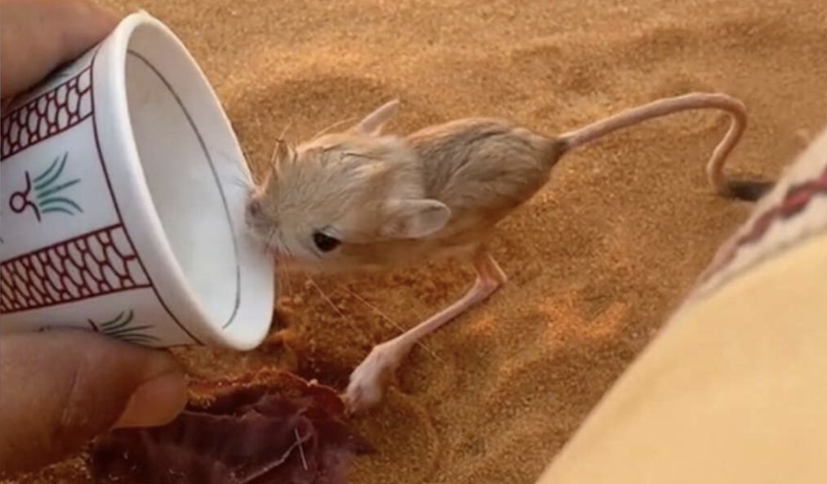 好心人餵「沙漠小跳鼠」第一次喝水! 牠驚喜狂喝:太美味了吧~
