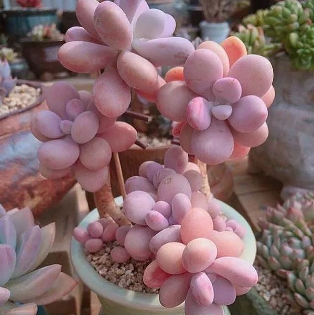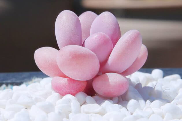 ▼「桃之卵多肉」的名字,最初是從日本傳出來的。這種多肉擁有霧面桃色的葉片,整片從粉紅到淺紫漸層生成,再加上飽滿肥嫩的造型,看起來就像薰衣草色的卵石,所以一些人直接叫它「桃蛋蛋」。
