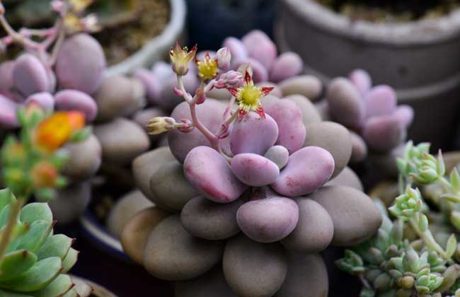 ▼「桃之卵多肉」會開花,只要給予足夠的光線,就會開出黃紅色的小花朵,花朵的形狀就像一顆顆小星星,搭配粉嫩的葉片,根本就是藝術品!