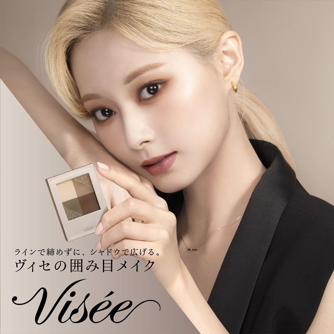 ▼Visée於6日證實,由子瑜和日本歌手吉野北人接下代言。子瑜為拍攝代言照,打扮得非常知性,一頭金髮綁成俐落馬尾,臉上帶著粉橘大地色妝容。在廣告正片中,她則化上煙燻妝改走暗黑風,風格多變。