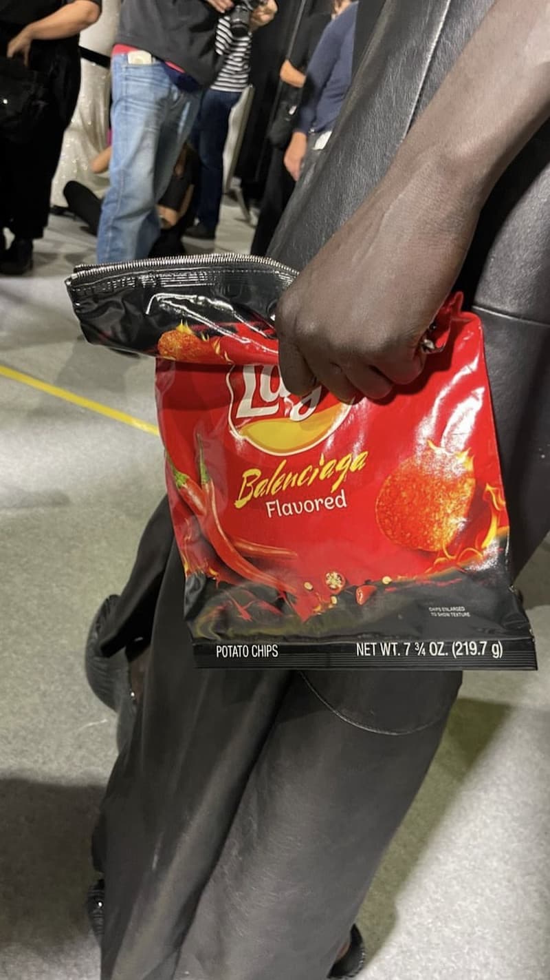 2022年10月19日巴黎世家 Balenciaga日前舉辦的2023夏季大秀給人帶來許多驚喜。首先是用「遺失的皮夾」作為邀請函,成功引發話題,秀中又展示出一款與樂事Lay’s合作打造的「薯片包」,超擬真的外型讓人眼前一亮,薯片控們都心動了!