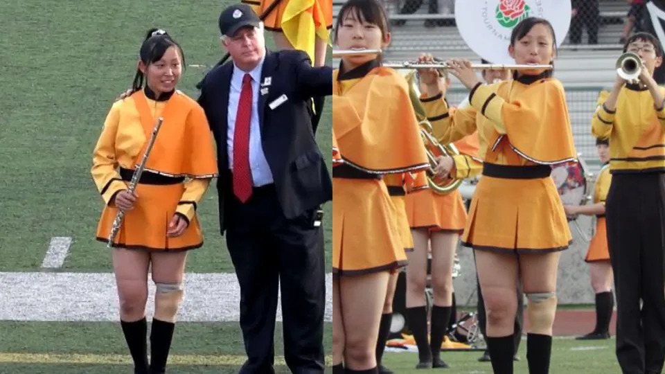 2022年10月17日在今年的雙十國慶大典上,被稱為「橘色惡魔」的日本京都橘高校吹奏部,憑藉13分鐘的演出圈粉無數。他們不停演奏、變化隊形,還手舞足蹈、面帶微笑。近日有網友發現,過去吹奏部中有過一名「義肢女孩」,她的故事非常感人。