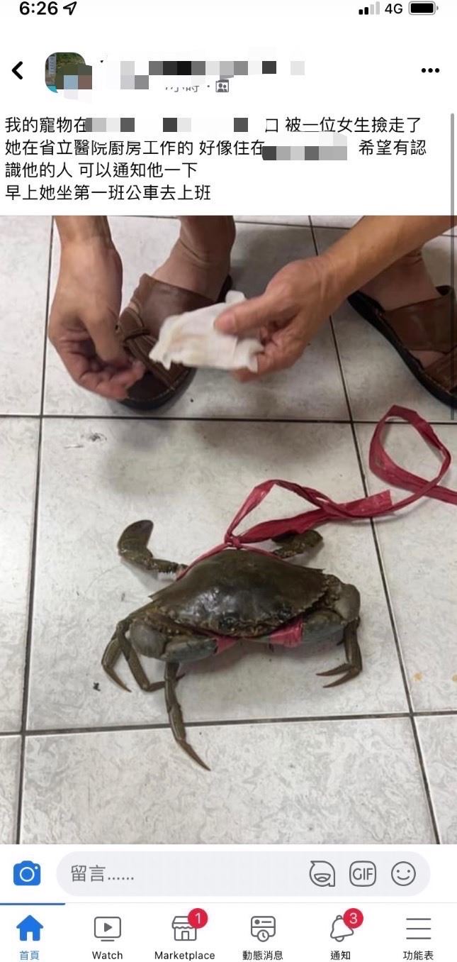 寵物蟹走丟!主人急PO網「要買來吃的」 警局「超溫腥團聚」網笑翻