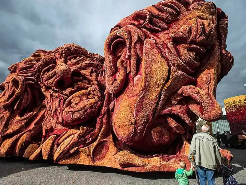 ▼據悉,津德爾特是全球大麗花的重要供應地,目前該地有33公頃大麗花田、50個不同品種的60萬株大麗花。無數盛開的鮮花被當成裝飾,花車壯觀的造型、美麗的色彩,都讓人印象深刻。