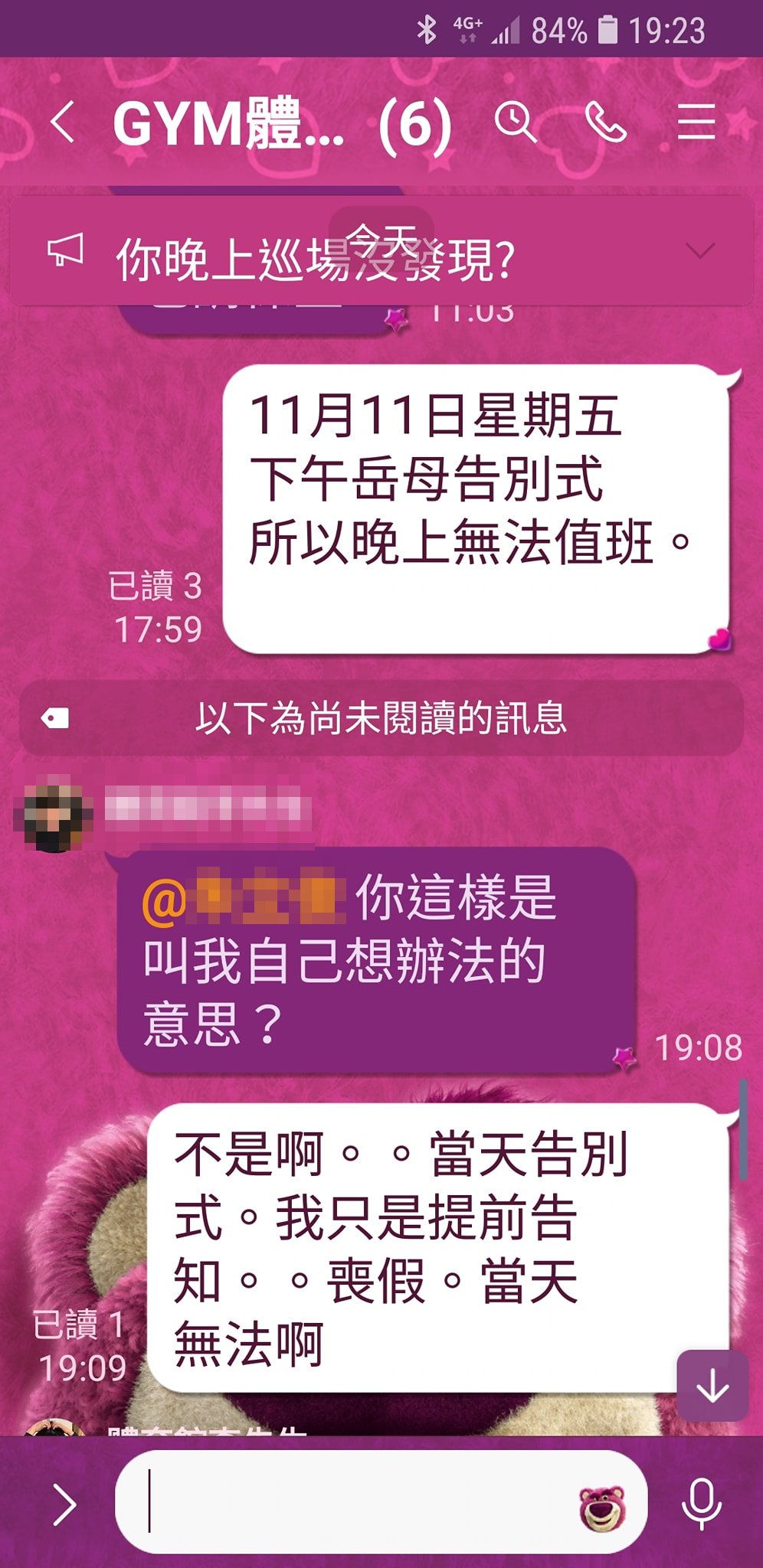 ▼從對話紀錄可以看到,主管在群組回:「你這樣是叫我自己想辦法的意思?我也沒有辦法幫你值班怎麼辦?你不行就是我自己處理?你的處理態度是這樣。」原po解釋說,自己並沒有這個意思,畢竟家裡有喪事並不是自己願意的,沒想到主管不斷跳針回:「你了不起,我不是人,是吧,你自己想想你面對這件事,在工作上處理的方式,你也不是剛出社會,剩下我也不想多說了。」