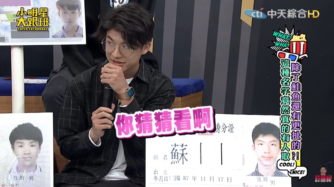 ▼不過真的有人會取名為「丨丨」嗎?去年4月,節目《小明星大跟班》以特別取名為題材,找來許多姓名特別的人上節目分享,其中一名男生就叫「蘇丨丨」。他解釋說「丨」音同「滾」,因為母親生他的預產期在11月,父親翻字典發現部首第一畫第一個字是「丨」,就給他取名為「丨丨」。