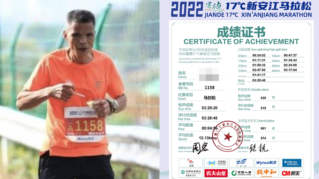 ▼據了解,這名男子今年已經50多歲,是許多馬拉松賽事的常客,被跑友們親切稱為「陳大爺」。他參加過廈門馬拉松、麗水超級馬拉松和拉薩半馬等賽事,不少跑友都曾看到過他奔跑的身影。