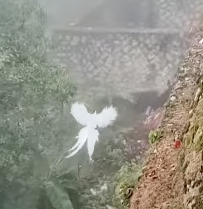▼這名遊客到福建漳州登山時,意外拍到「白鳳凰」在山谷中悠遊飛翔的畫面。影片中的「白鳳凰」羽毛飄逸,身姿優雅,看起來充滿仙氣。