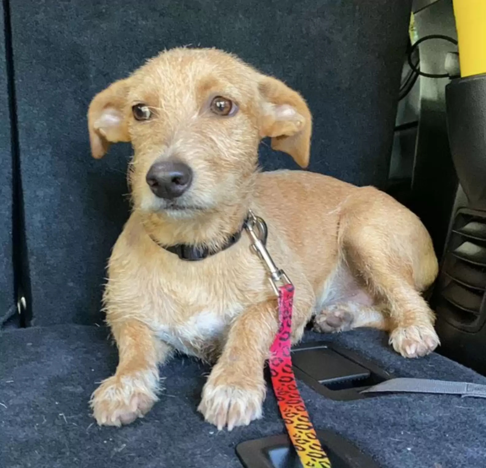 ▼她花了2個小時的時間,才將這隻小狗帶上車,並給小狗取名為Melo。