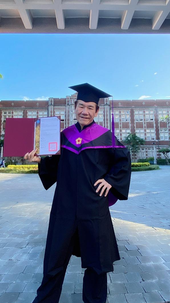 趙傳趁疫情3年完成碩士學位,他驕傲表示:「拿到證書的那一剎那覺得很開心,更重要的是在三年中間完成了人生一件很重要事情,沒有白白浪費疫情三年空轉時間。」