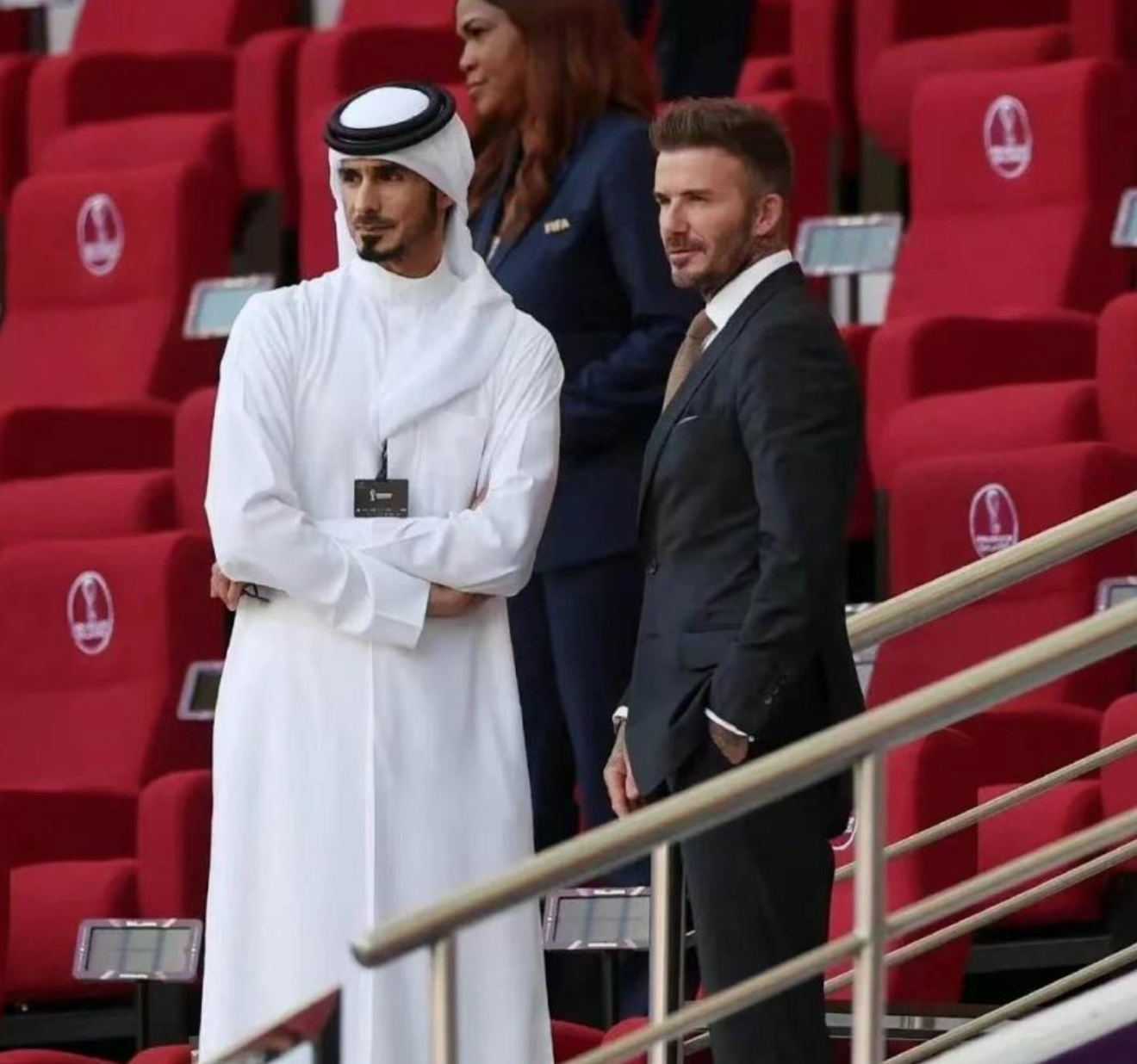 2022年12月05日這段時間最熱門的話題就是卡達世足賽。除了精彩的比賽,觀眾席上的名人們也是媒體和民眾關注的焦點。一位與貝克漢(David Beckham)站在一起交談的白袍男子引發討論,他長相英俊、身材高大,站在183公分的貝克漢身旁還略高一籌。網友們都很好奇,這到底是何方神聖?