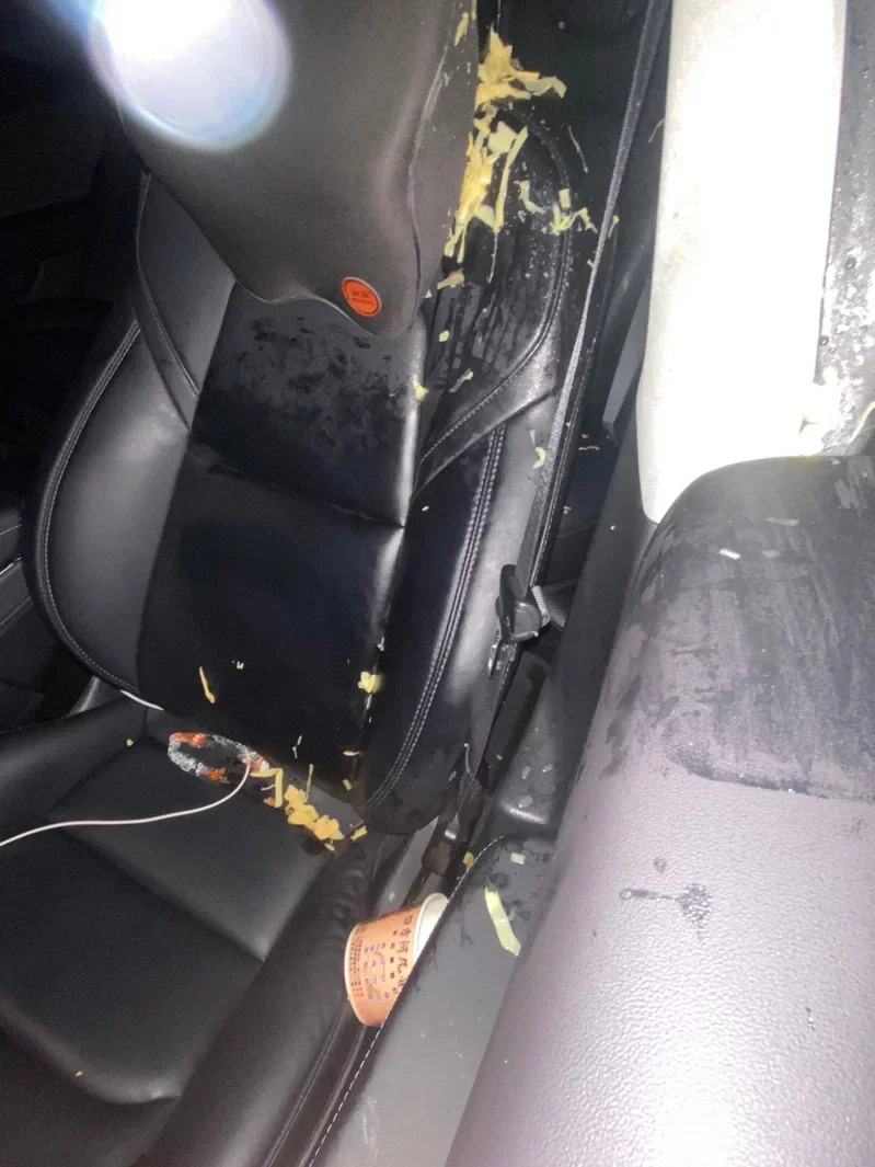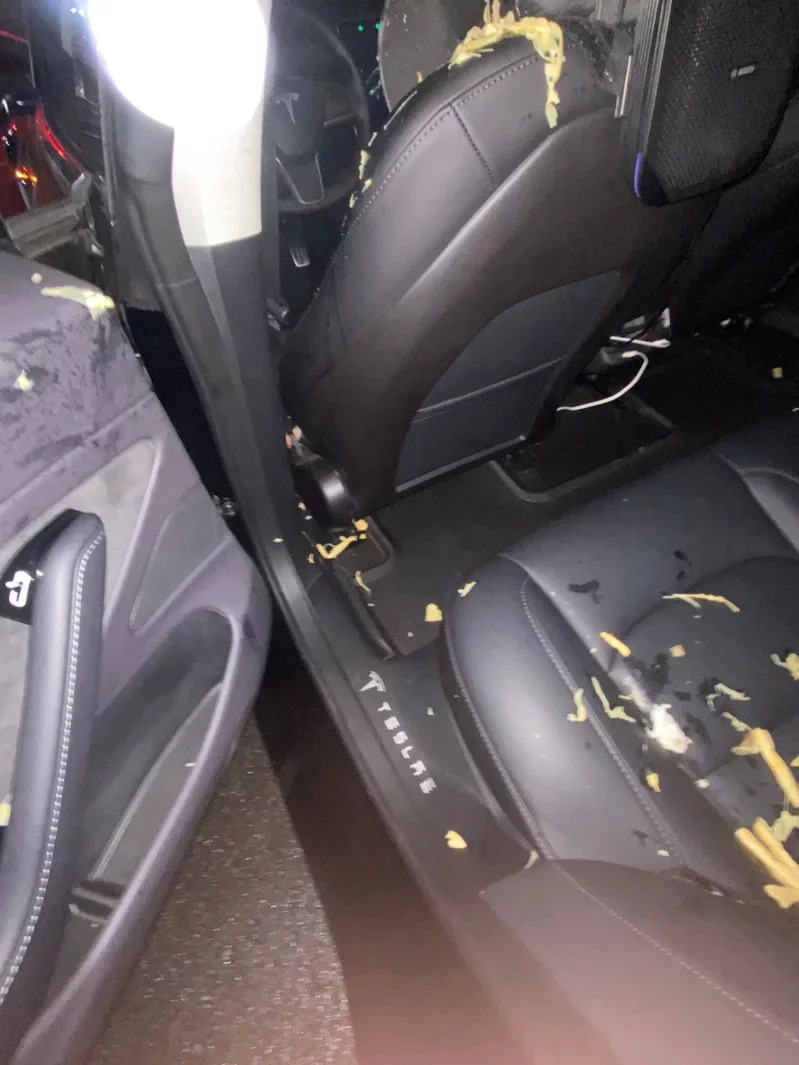 噁爆!聯結車亂丟「滷肉飯加筍絲」進特斯拉 車主沒關窗「慘遭廚餘噴一身」