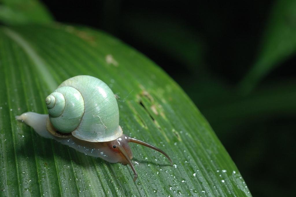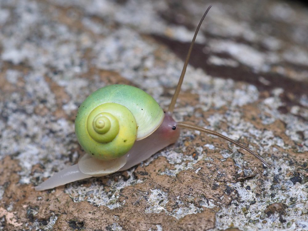 青山蝸牛是台灣的特有亞種,而且長得超可愛。嫩綠色的殼看起來非常療癒,根本就是森林中的小精靈~