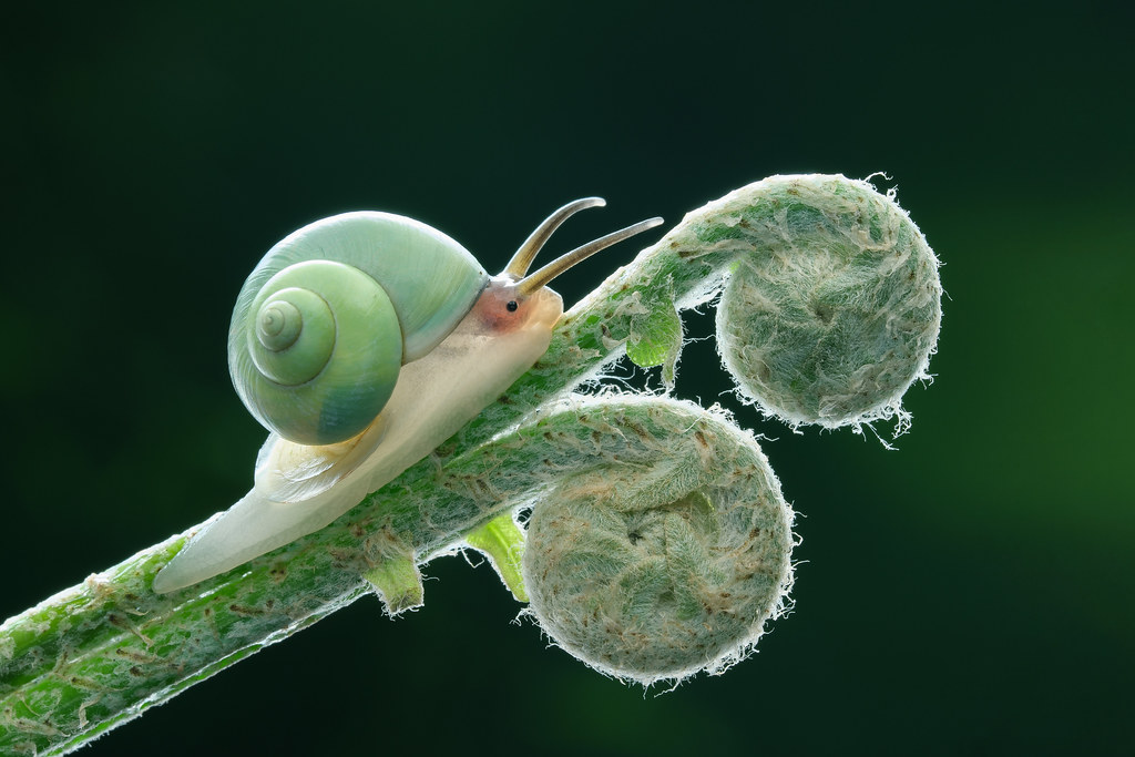 森林中的小精靈!「青蘋果嫩綠蝸牛」只有指尖大小 近看超特別眼睛太可愛