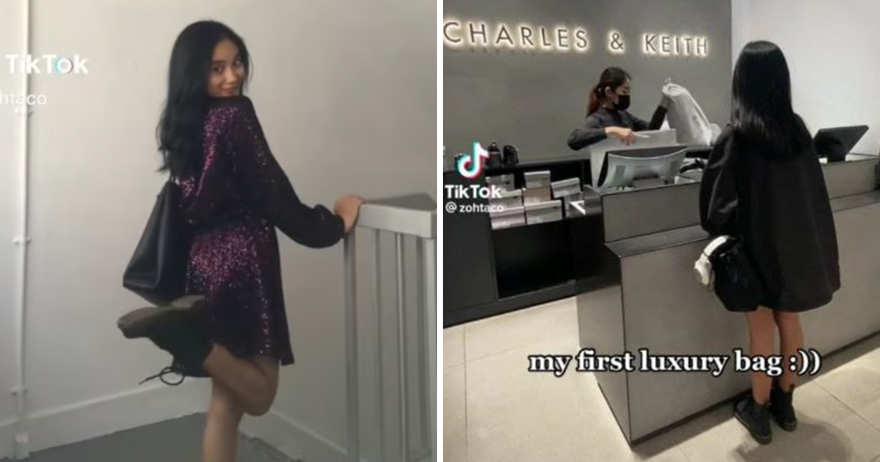 ▼17歲女孩Zohtaco在TikTok發布開箱影片,分享爸爸花80新幣(約新台幣1830元)買來送給自己的CHARLES & KEITH包包。她開心表示這是自己人生中第一個名牌包,並配文寫道「謝謝爸爸」。