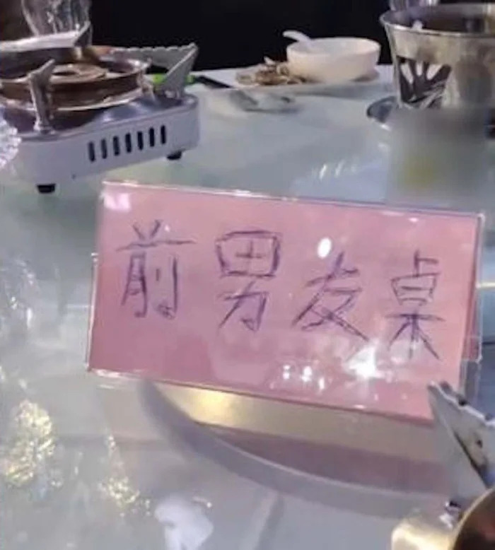 還有網友認為,這可能是兄弟姊妹們開的玩笑:「應該是假的吧,如果是真的這婚估計結不成了」、「一看(「前男友桌」迎賓牌)就是臨時寫的。如果是早就準備好了的應該是列印的」。