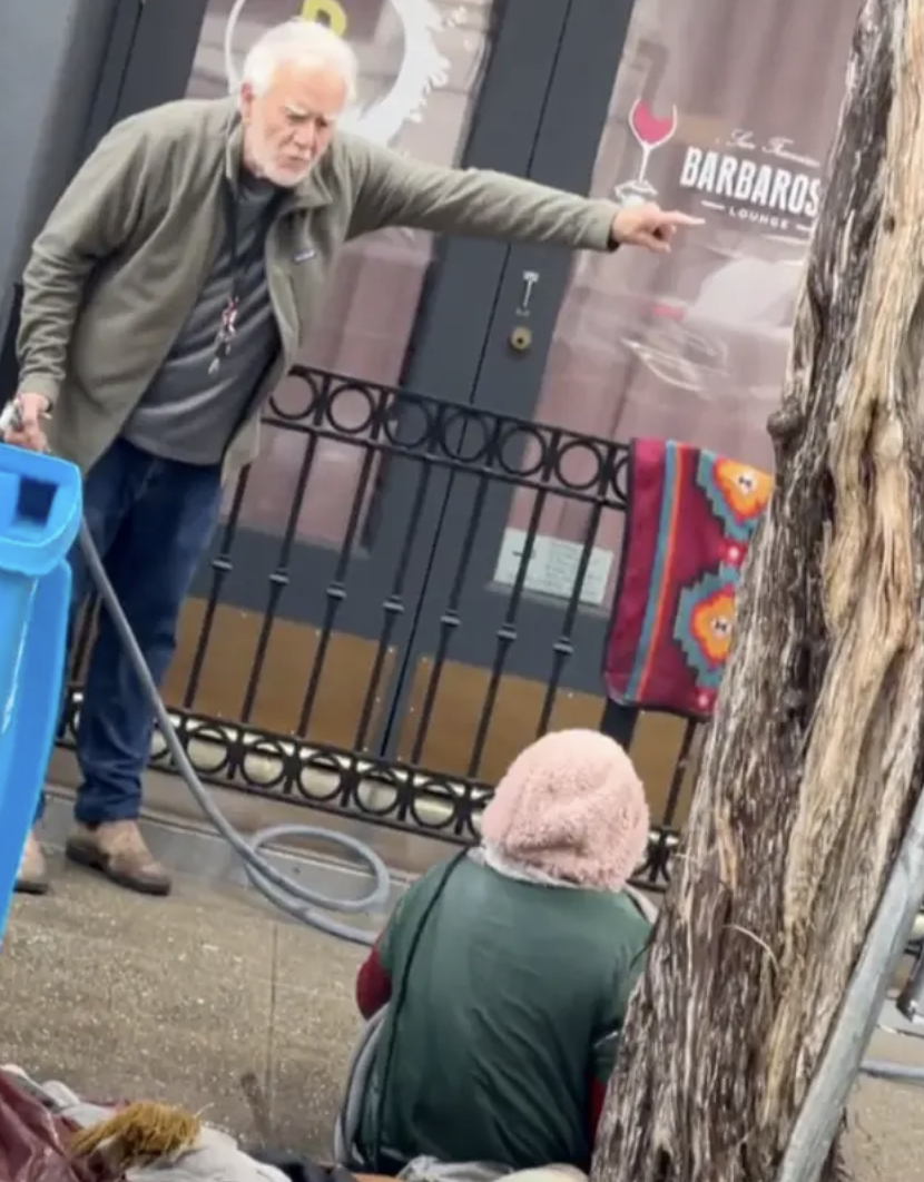 2023年02月06日近日有人在美國舊金山一家畫廊前拍到了令人憤怒的一幕,只見一名女街友坐在畫廊門口,而畫廊老闆Collier Gwin則噴水驅趕她,還大聲呵斥要她離開。這段影片在網路上傳開後引來大批網友撻伐,Gwin可能會以「過度襲擊」罪被起訴。