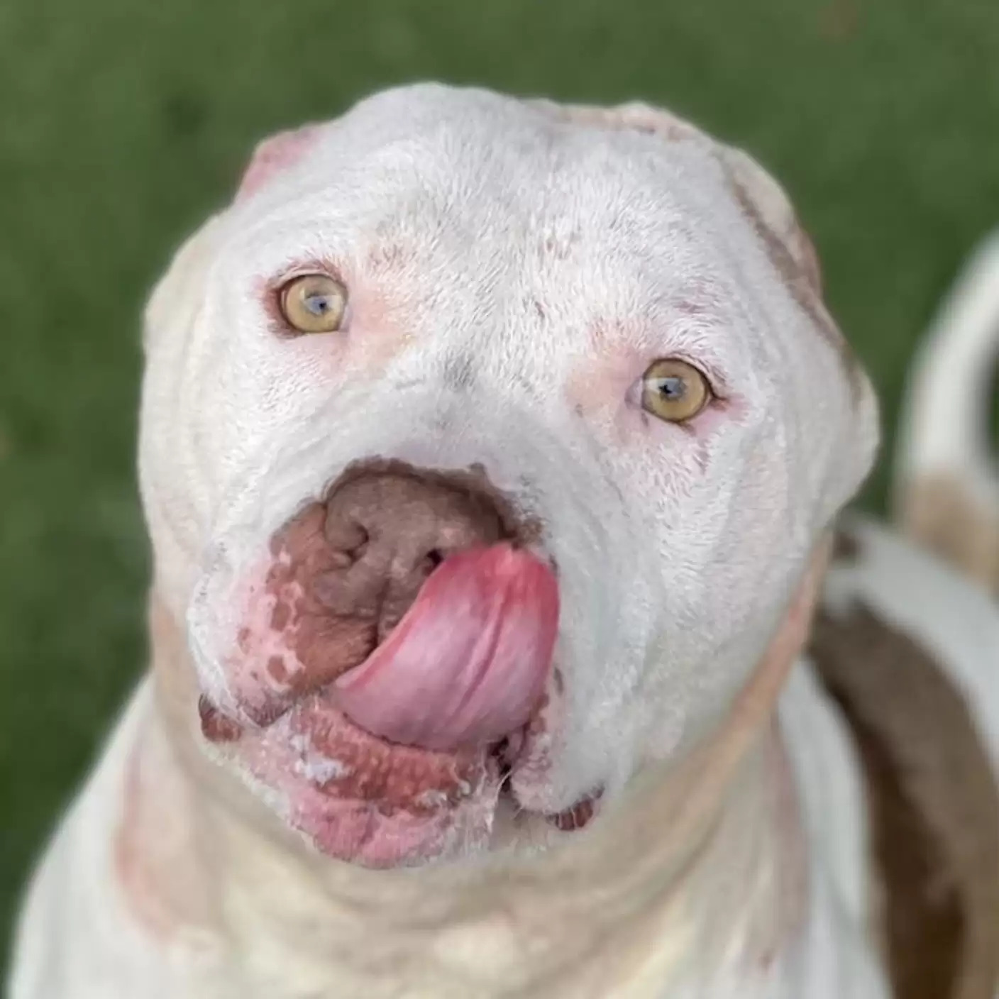▼Willy雖然失去了耳朵,但聽力沒有受到影響。動物收容所的工作人員說:「牠被送來的最初幾週,我們時刻關注著牠的傷口。雖然牠經歷了可怕的事故、離開了熟悉的環境,但牠是一隻很乖的狗狗,治療過程中也非常配合。」