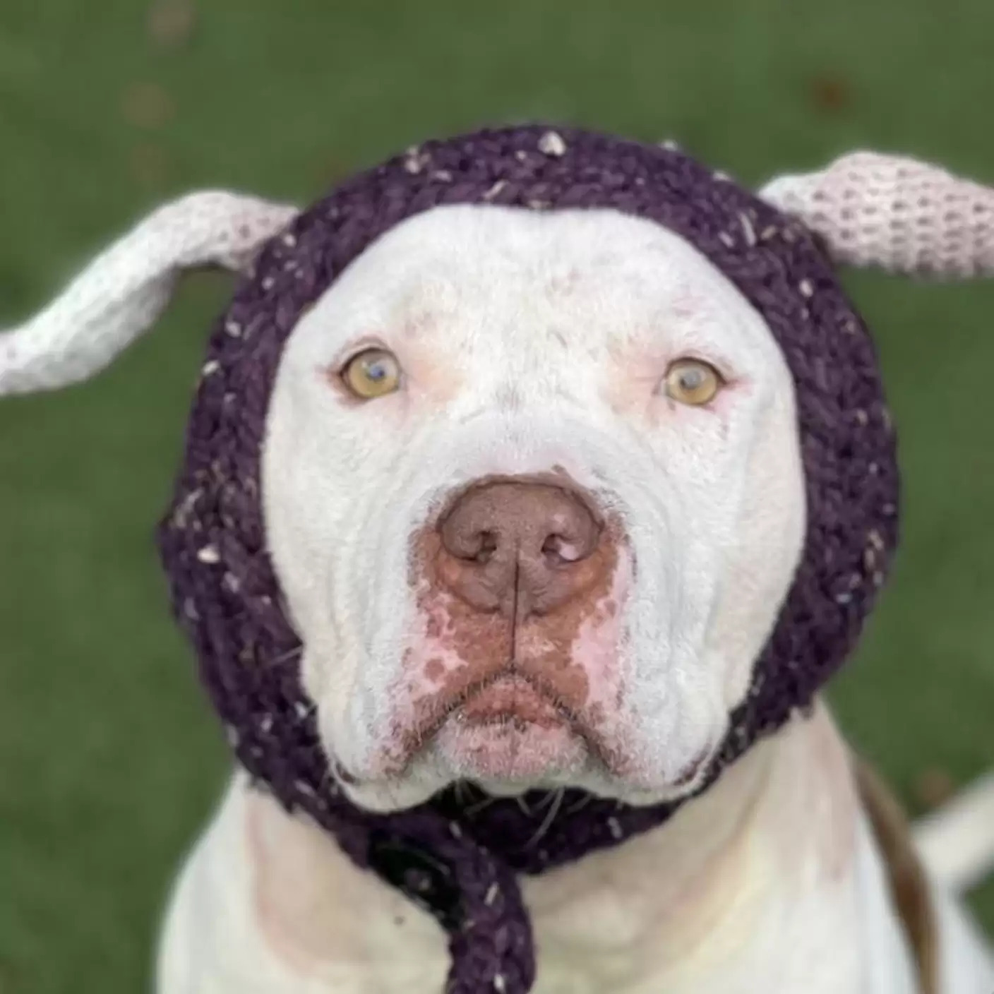 2023年02月08日美國加州有一隻2歲的鬥牛犬Willy Wonka,牠原本生活在一個溫馨的家庭裡,但一場可怕的事故導致牠失去耳朵,從此之後牠的生活徹底改變了。主人無力承擔Willy的醫藥費,只能將牠送到當地的動物收容所。牠在那裡得到了最珍貴的禮物-一頂可愛的毛線帽。