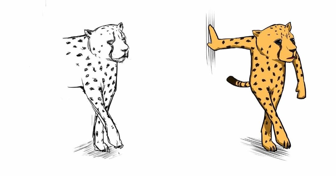 ▼本想畫一隻獵豹,畫到一半不想畫了,讓牠變成推著牆的浪子吧!