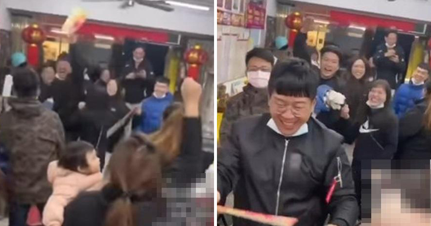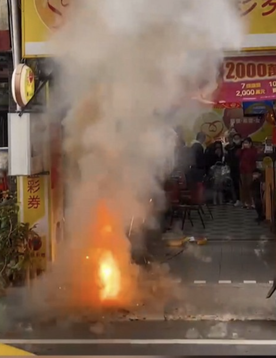 ▼天亮後彩券行老闆在門口放起鞭炮,老闆的女兒說,刮中大獎的是自己的同學,「他們每年都會來這邊,等我下班去吃飯,那天想說怎麼那麼久還沒來,我就打電話給他們,結果是車子在路上故障,他們坐計程車過來。」