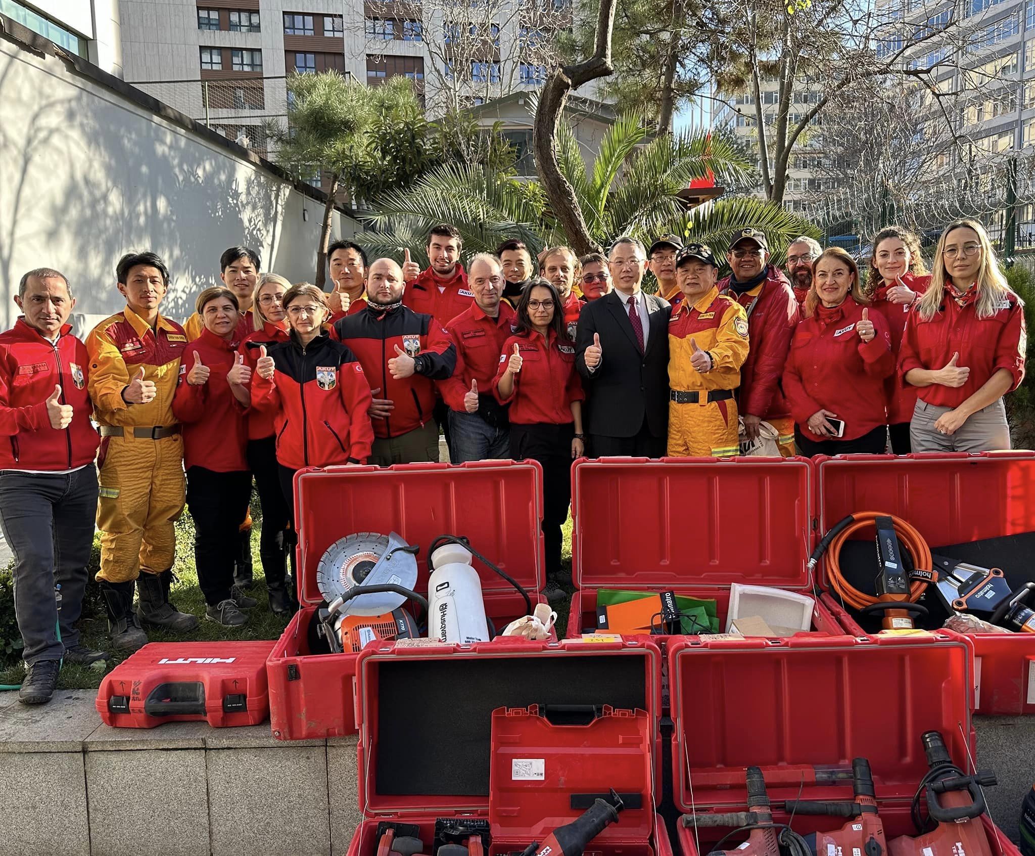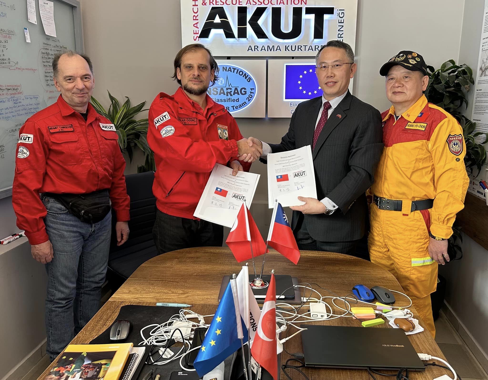 2023年02月14日土耳其和敘利亞邊界6日發生芮氏規模7.8強震,截至目前,罹難人數已超過3萬人。台灣在第一時間派出2梯次搜救隊,共130人及5隻搜救犬到場援救,因為階段性搜救任務結束,台灣搜救隊在12日下午分批撤離。離開之前,台灣搜救隊將此行攜帶的約4噸搜救裝備器材,與外交部合作透過外交管道贈與AKUT搜救隊。