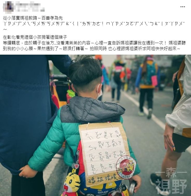 太有心了!男童手寫注音紙板向媽祖「求他快醒來」 網感動鼻酸