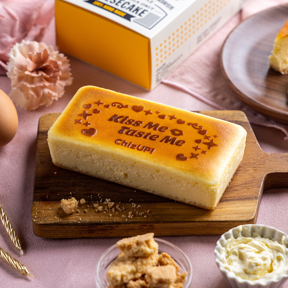 ▼起司控的白色情人節蛋糕首選!「ChizUP!」Kiss Me Baby招牌黃金起司,以黃金比例的乳酪配方,嚴選天然食材,透過繁複手工分蛋製作及水浴烘焙法,提昇蛋糕的綿密滑順口感,金黃色的外表下,蘊藏著深不可測的濃郁起司風味,濃濃的奶香味更為白色情人節增添甜蜜氛圍。現在預訂有優惠,原價510元,現價480元!