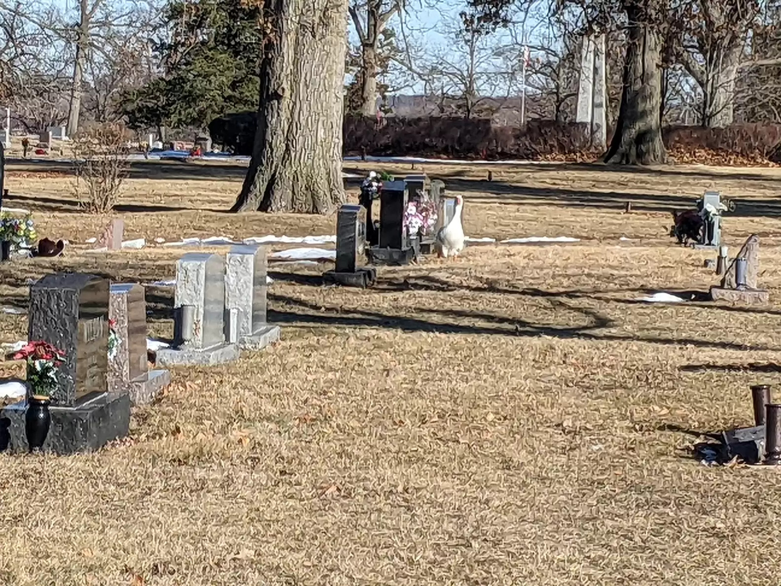 2023年09月04日幾年前,兩隻家雁Blossom和Bud在美國愛荷華州馬歇爾敦的河濱公墓(Riverside Cemetery in Marshalltown, Iowa)定居。牠們形影不離,每天都待在一起,那相互陪伴的可愛身影療癒了很多心碎的人們。但去年8月,Bud去世了。