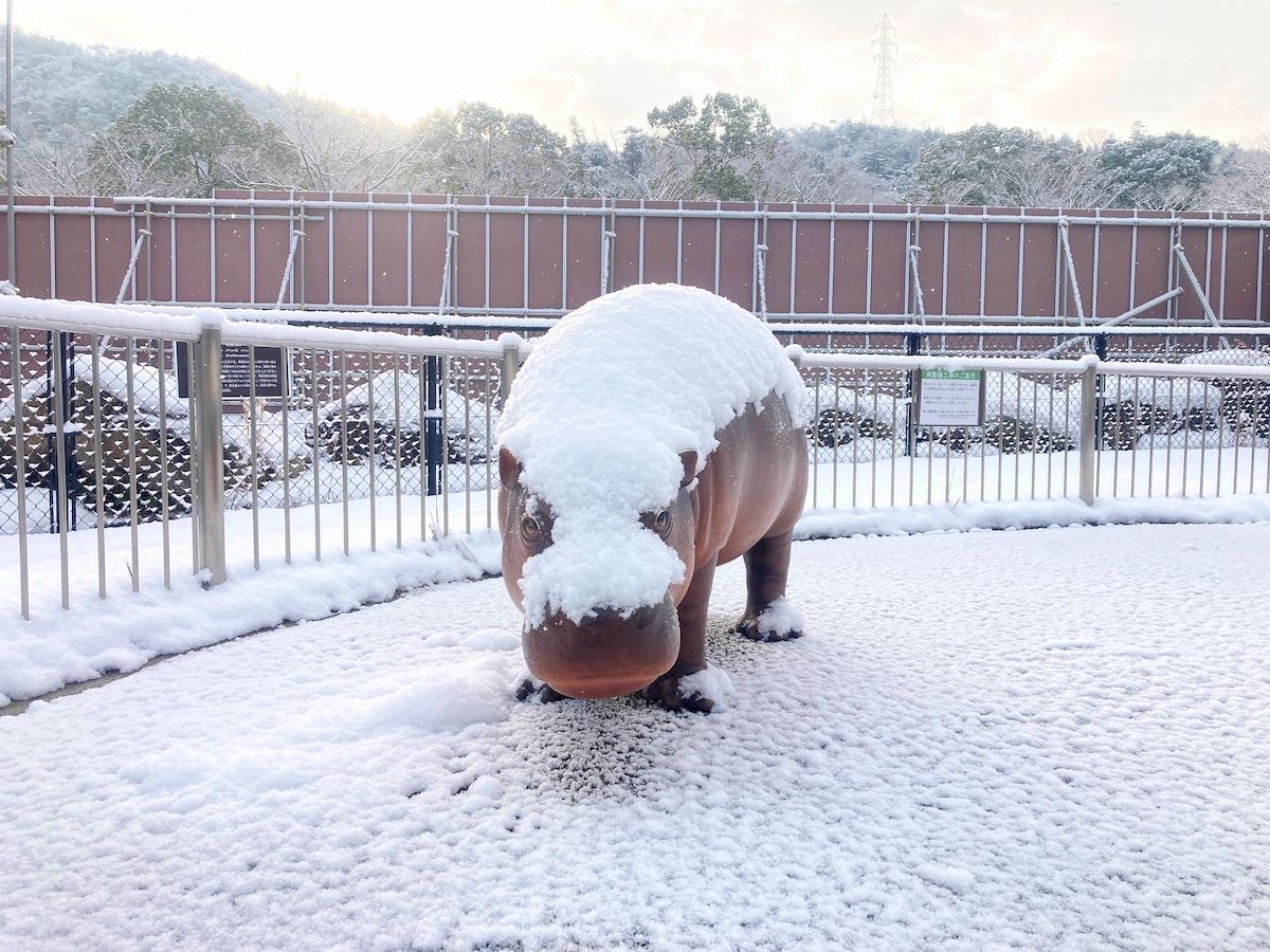 也有網友好奇,這隻侏儒河馬怎麼會任由白雪堆滿背?原來這並非真正的動物,而是園區內裝設的「侏儒河馬裝置藝術」,所以即便身上堆滿白雪也沒有清理,更不用擔心牠會受寒。