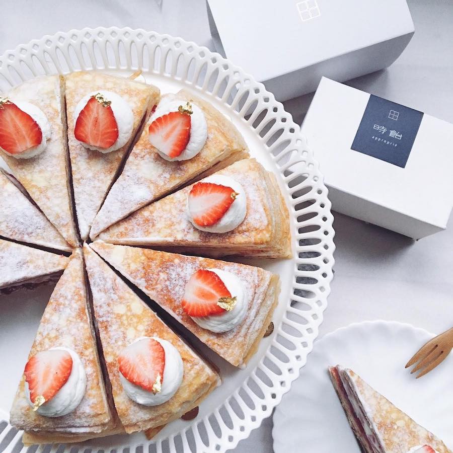 時飴 Approprié的蛋糕非常精緻,店家使用日本麵粉、諾曼地奶油、法國鮮奶油和台灣茶葉,完美打造出新鮮獨特的蛋糕,尤其冬季限定的草莓千層,從草莓鮮奶油、草莓醬和新鮮草莓切片,全都是草莓元素,酸酸甜甜的滋味令人難忘。