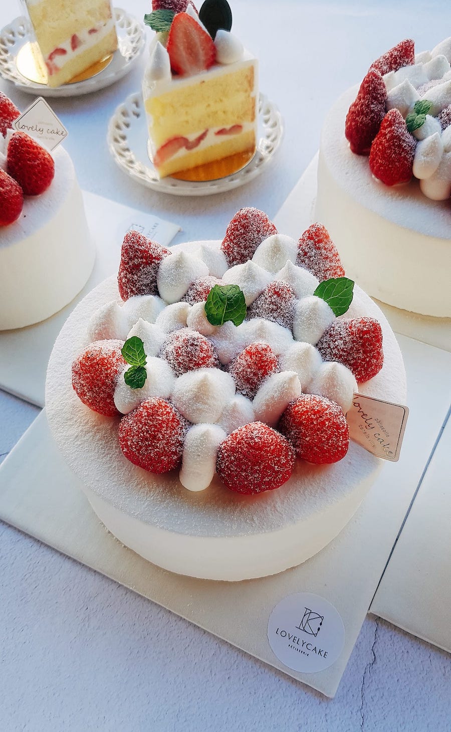 樂芙尼手工蛋糕的甜點大多是可愛的日式風格,不僅有一人獨享的蛋糕,也有多人共享的大尺寸蛋糕。常規款的蛋糕非常美味,還有季節限定口味的蛋糕,在IG上討論度更高。冬季限定「白雪」是渾圓造型的鮮奶油搭配滿滿的草莓,外型超夢幻。